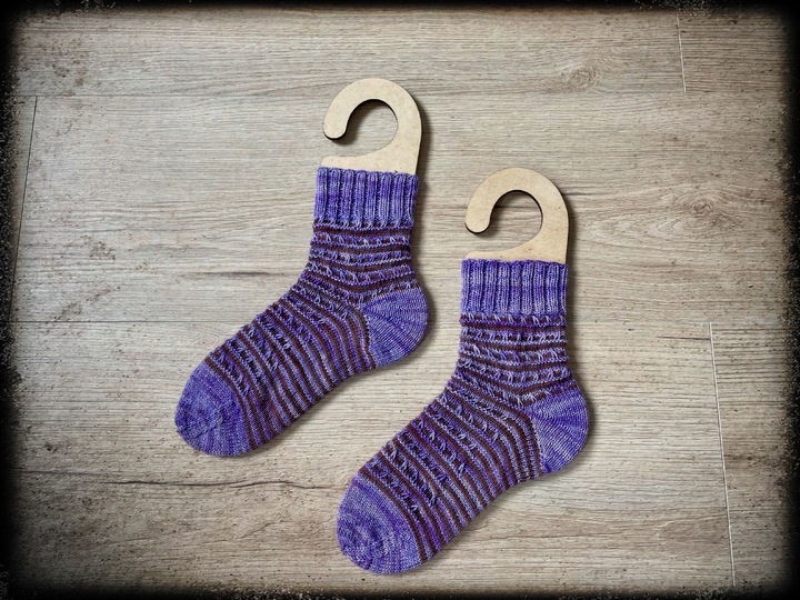 Entdecke das einzigartige Hebemaschenmuster "Wusterwitz" und stricke individuelle Socken oder Armstulpen für Damen und Herren.