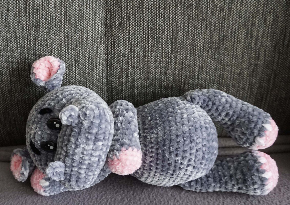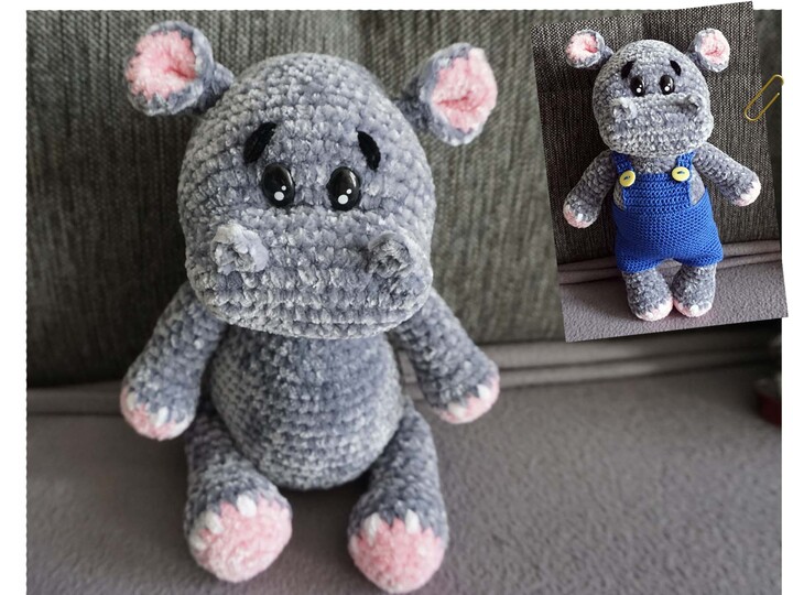 Entdecken Sie die Freude am Häkeln mit der Anleitung für ein kuscheliges XL-Nilpferd aus Chenillewolle.