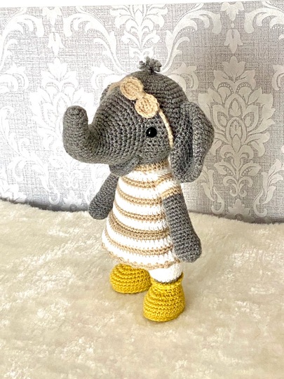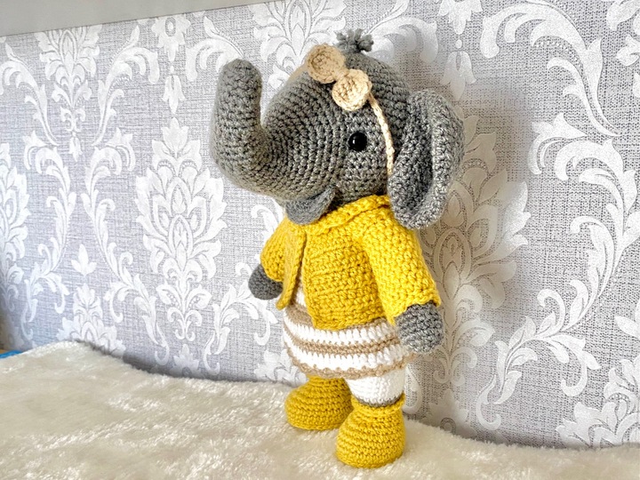 Mit der angegebenen Wolle wird Evelyn ELEFANT je nach Häkelgewohnheit ca. 27 cm groß.