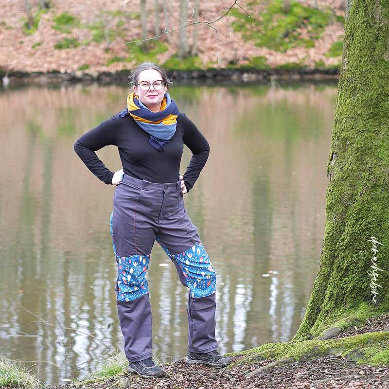 Dieser Schnitt für eine Outdoor-/Arbeitshose aus mittelschwerer bis schwerer Webware mit insgesamt 6 Taschen und einer zusätzlichen Reißverschlusstasche, mehreren Laschen zum Einhängen von Zubehör, einem bequemen Bund dank Gummizug im Rücken und vielfältigen Knieoptionen, trägt den schönen Namen "Unter freiem Himmel". Das Schnittmuster beinhaltet natürlich eine ausführliche Anleitung und die Damen Größen 32 - 54 ausgelegt auf eine Körpergröße von 1,68 m.