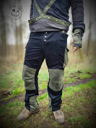 Dieser Schnitt für eine Outdoor-/Arbeitshose aus mittelschwerer bis schwerer Webware mit insgesamt 6 Taschen und einer zusätzlichen Reißverschlusstasche, mehreren Laschen zum Einhängen von Zubehör, einem bequemen Bund dank Gummizug im Rücken und vielfältigen Knieoptionen, trägt den schönen Namen "Unter freiem Himmel". Das Schnittmuster beinhaltet natürlich eine ausführliche Anleitung und die Herren Größen 22 - 32 (untersetzte Größen).