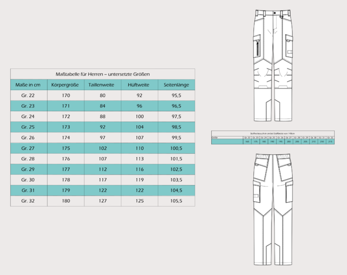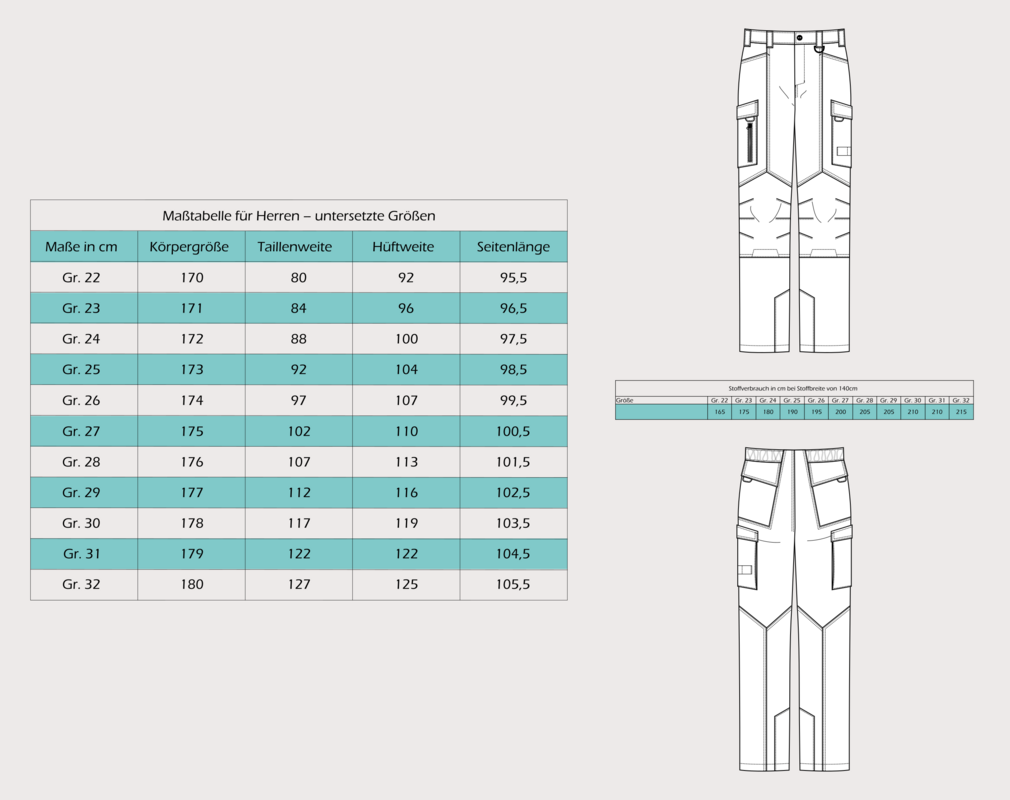 Im Schnittmuster enthalten sind die Herrengrößen 22 - 32 (untersetzte Größen).