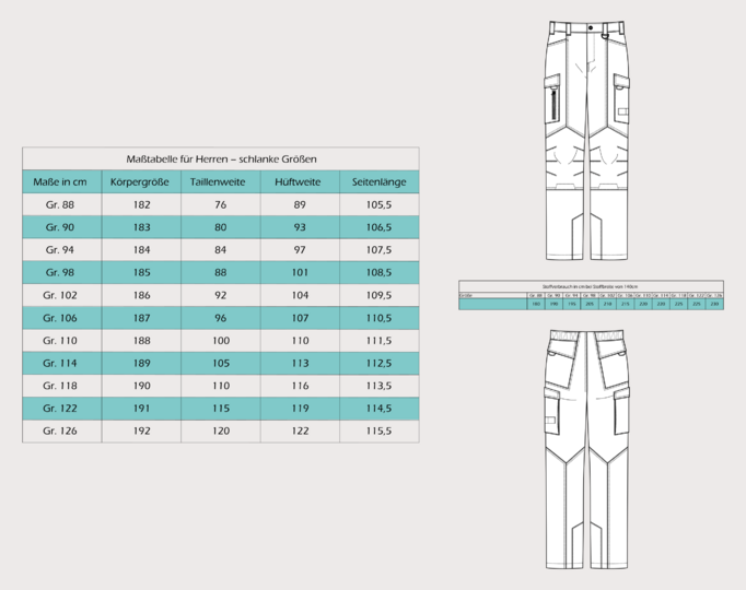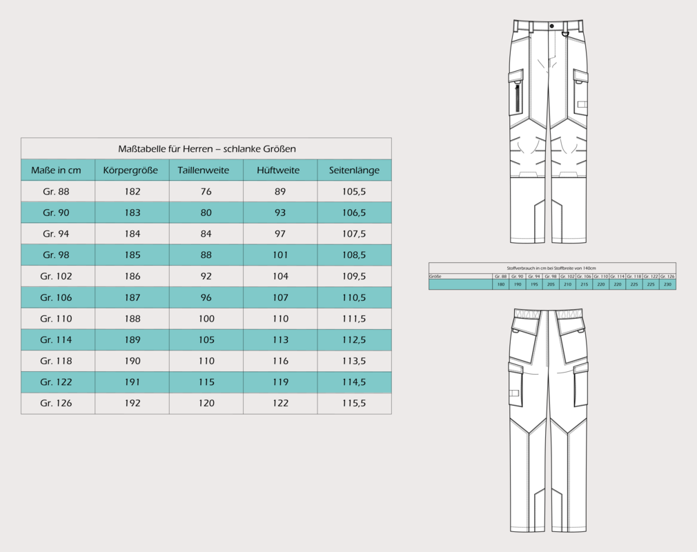 Im Schnittmuster enthalten sind die Herrengrößen 88 - 126 (schlanke Größen).