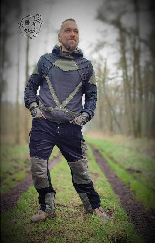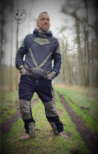 Dieser Schnitt für eine Outdoor-/Arbeitshose aus mittelschwerer bis schwerer Webware mit insgesamt 6 Taschen und einer zusätzlichen Reißverschlusstasche, mehreren Laschen zum Einhängen von Zubehör, einem bequemen Bund dank Gummizug im Rücken und vielfältigen Knieoptionen, trägt den schönen Namen "Unter freiem Himmel". Das Schnittmuster beinhaltet natürlich eine ausführliche Anleitung und die Herren Größen 44 - 64 (normale Größen).