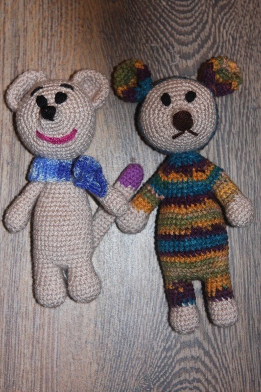 Die fertigen Tierchen werden bei Verwendung von Schachenmayr Bravo und Nadelstärke 2,5 , von Kopf bis Fuss ca 20 cm groß.