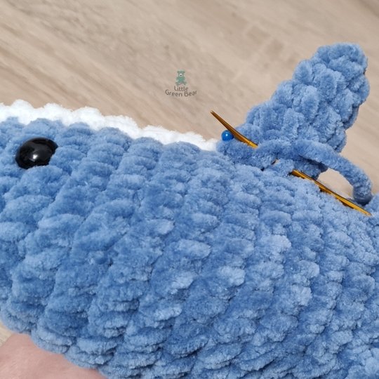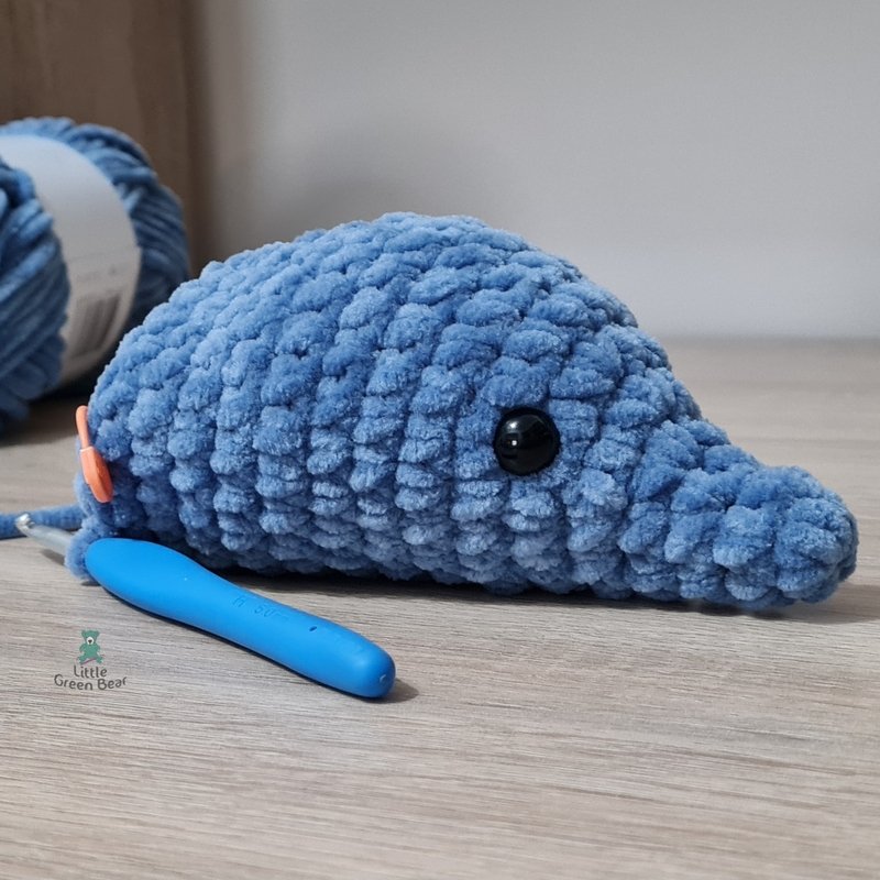 I’ve made Dylan the dolphin using a super chunky #6 weight plush yarn. This is ideal for a soft and huggable toy and is a quick make - you can make your dolphin in a few hours. Dylan can also be made in a smaller weight yarn, with a smaller crochet hook. He is 11.5 inches long in super chunky yarn (in Aran weight yarn he is 7 inches long).