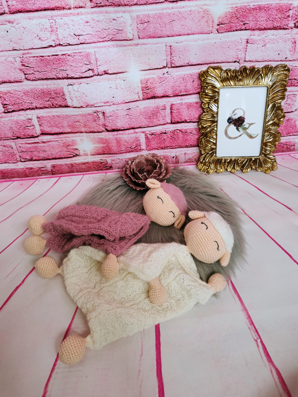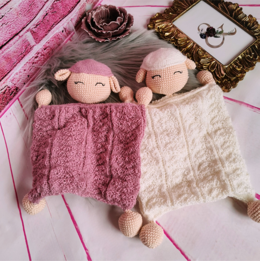 Fertige Größe: Weiß - 30 cm oder Rosa - 27 cm, gehäkelt mit Drops Alpaca Nr. 1101 Weiß, Drops Alpaca Nr. 3720 Rosa, Scheepjes Catona Nr. 255 Wolle und Häkelnadel 2,0 mm und Rundstricknadel 2,50 mm (40 cm).