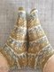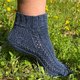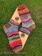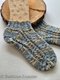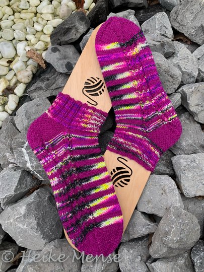 In dieser Anleitung ist das gezeigte Bündchen, die verstärkte Hufeisenferse und die Bandspitze beschrieben. Es kann aber beliebig ausgetauscht werden.