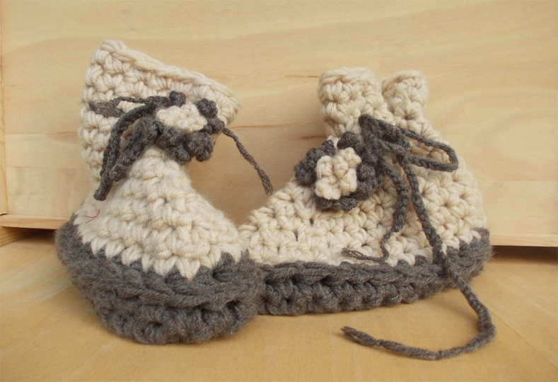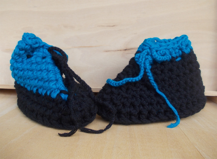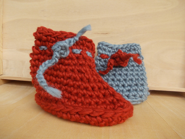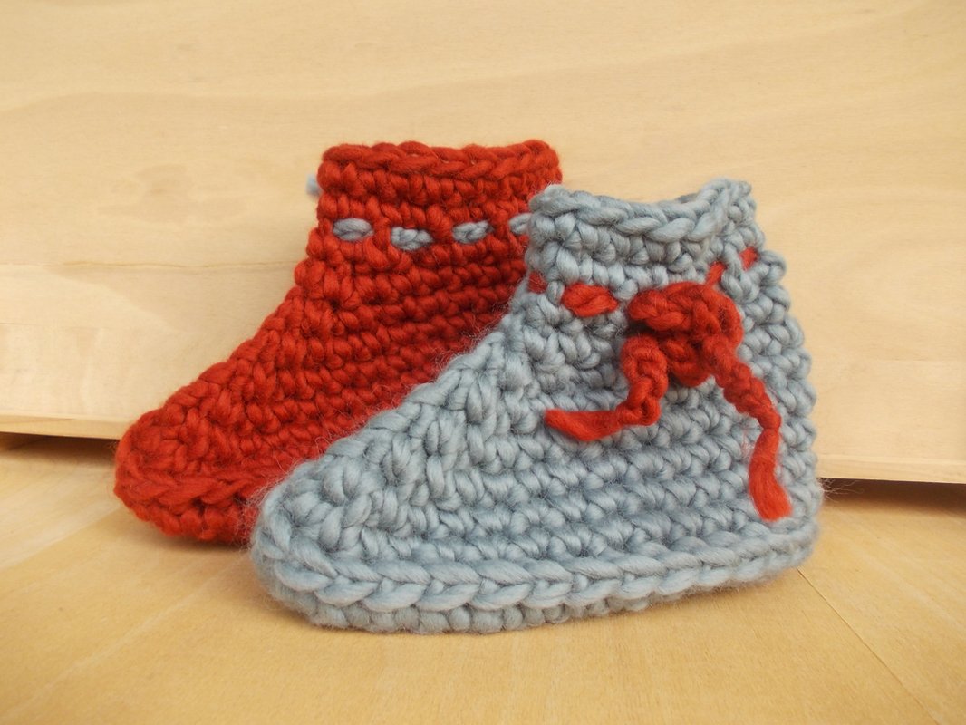 Auch Wollreste können verwendet werden, da bunte Boots besonders toll aussehen. Als Geschenk immer ein Knüller. Vielleicht findet Ihr noch eine Anleitung für Häkelblüten in meinem Shop, z. B. die Pufferblume oder eine kleine Häkelrose, welche sehr hübsch auf den Boots aussehen.