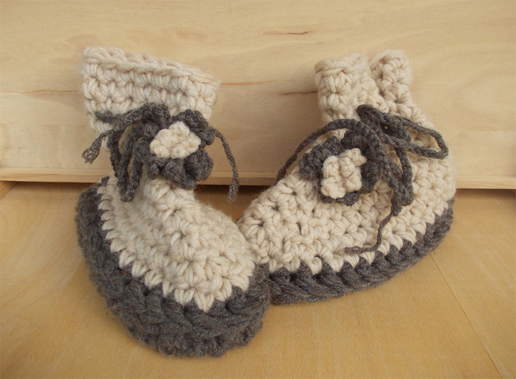 Ihr erhaltet eine Häkelanleitung mit Anleitung für die Boots, die kleinen Blüten (Bild beige und braun) und die Häkelbänder. Auf den Bildern seht Ihr, wie man die Boots oder Stiefelchen oder Bettschuhe oder Hausschuhe variieren kann, farblich oder verziert.
