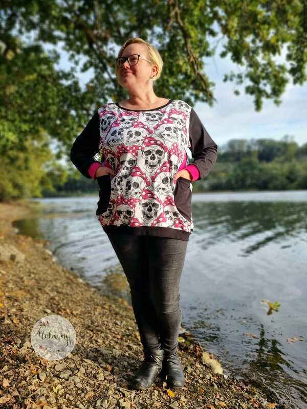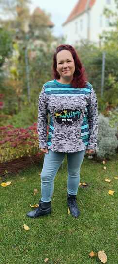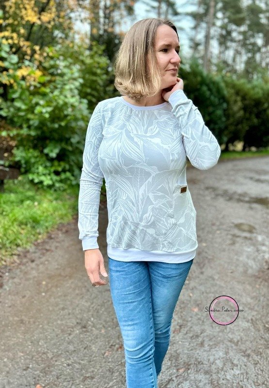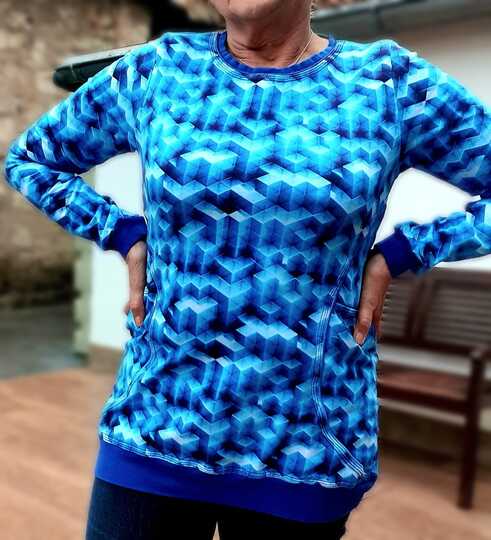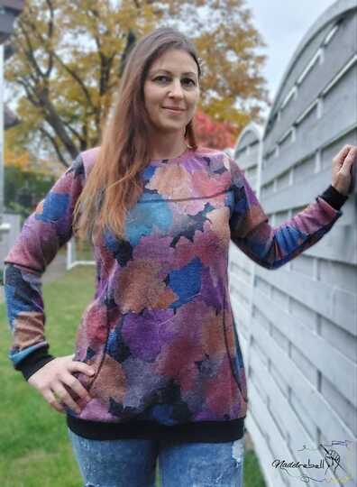 Gr. 34 – 54 umfasst der Damenschnitt, den du idealerweise aus Jersey, Sweatstoff oder dünnen Strickstoffen nähen kannst.