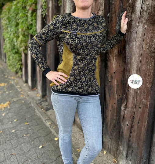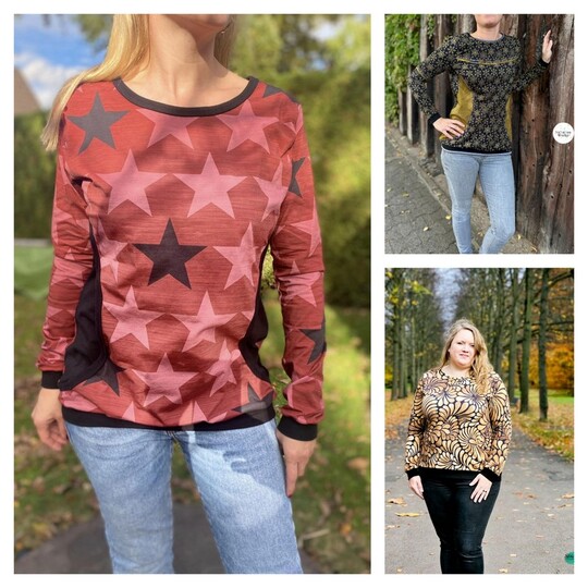 Ein lässiger Sweater mit Teilungen, die jede Silhouette vorteilhafter erscheinen lässt: mit dem Sweater Josefina kannst du dir dein Wohlfühlteil für die kühlere Jahreszeit nähen!