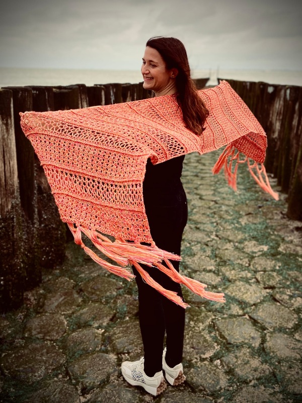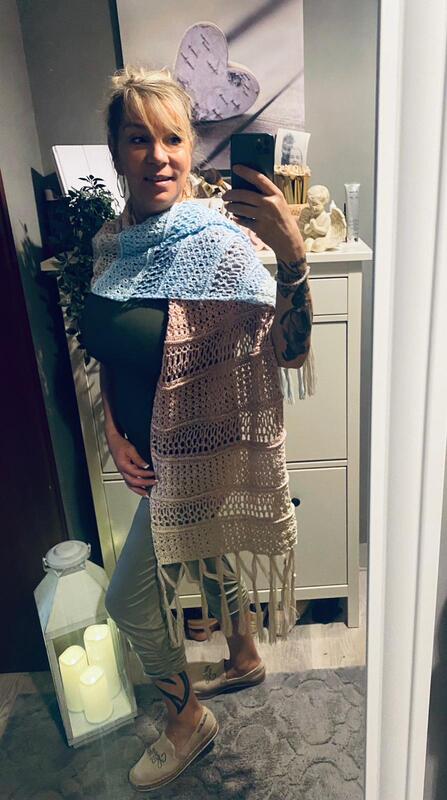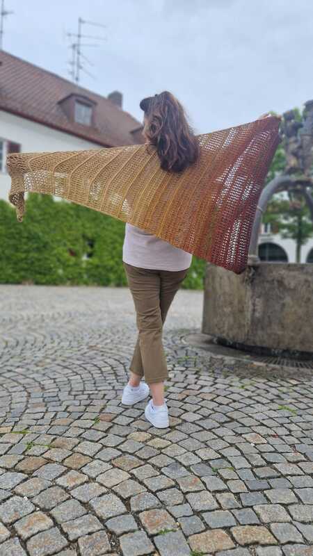 Die Anleitung Tamani bietet, wieder mehrere Varianten. Ob flaches asymmetrisches Tuch oder Stola (Schal), beiden Varianten sind immer ein echter Blickfang.