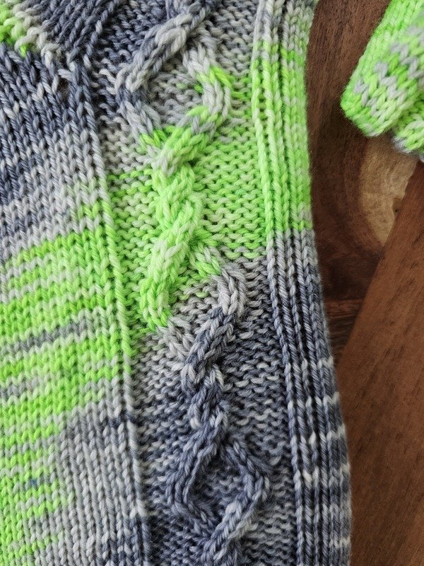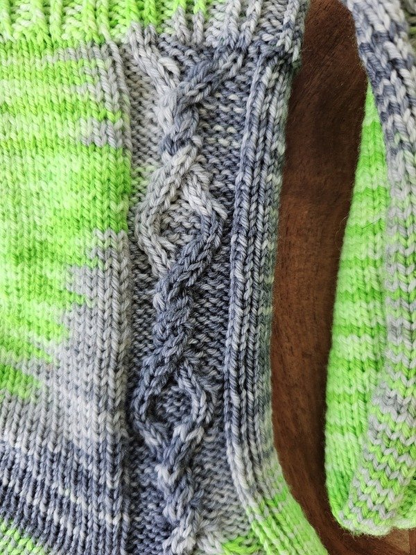 Es wird verzopft. Ansonsten sind es nur rechte und linke Maschen.