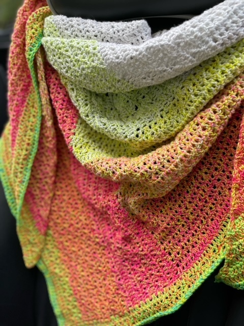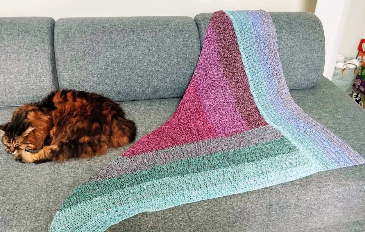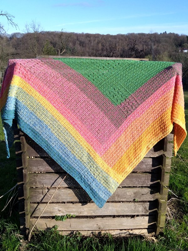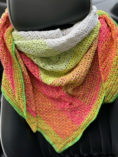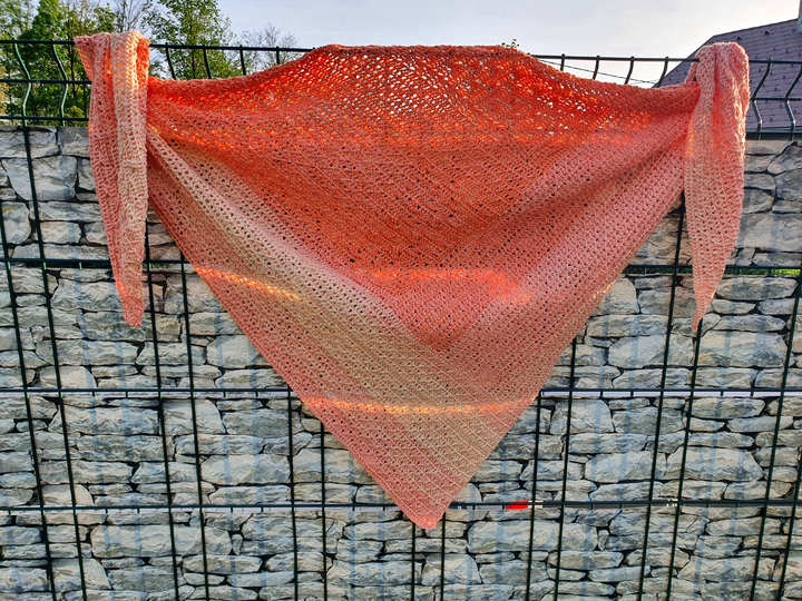 Einzigartiges Muster: Mit der Häkelanleitung für das Dreiecktuch "Mélange" erschaffst du ein Tuch, das durch sein etwas durcheinander geratenes Muster alle Blicke auf sich zieht.