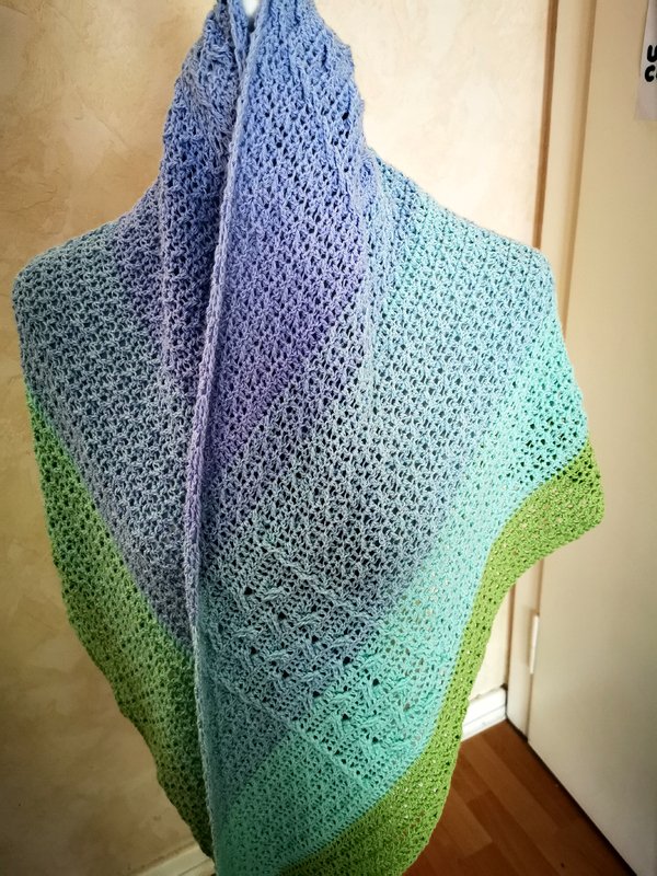 Das Tuch ist von den Maschen her für Anfänger geeignet, allerdings muss an mancher Stelle aufgepasst und genau gezählt werden. Es ist nicht an jeder Stelle "fernsehtauglich".