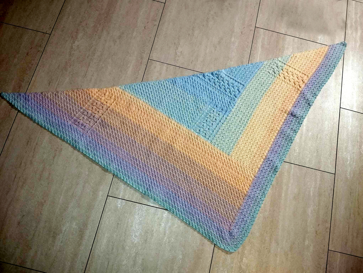 Flexibel in der Größe: Gestalte das Dreiecktuch ganz nach deinen Vorstellungen und entscheide selbst, wie groß es werden soll. Deiner Fantasie sind ab dem 4. Mustersatz keine Grenzen gesetzt.