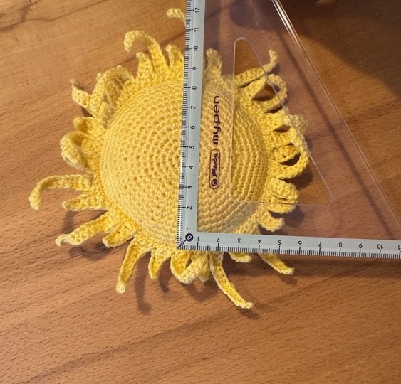 Siehe gern in den Bilder nach, hier liegt der fertigen Häkelteile auf dem Maßband um einen Anhalt zu geben.