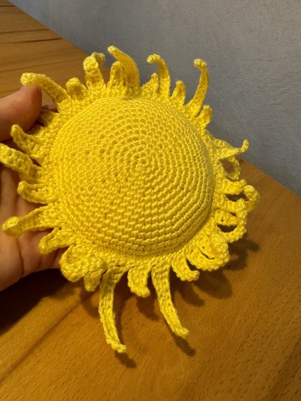 Sonne: ca. 17cm im Durchmesser mit Strahlen, Sonnenmitte ca. 9 cm; Höhe ca. 3 cm