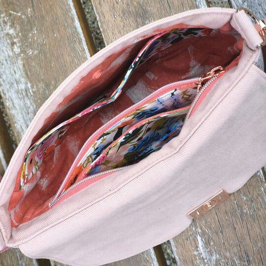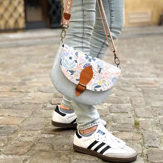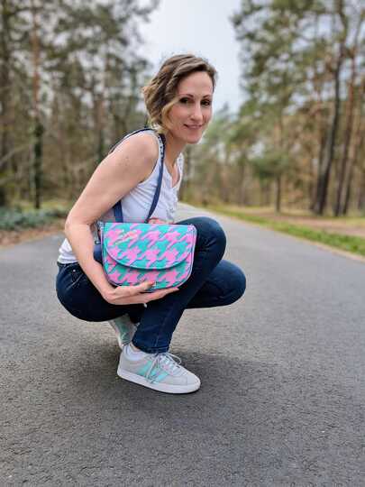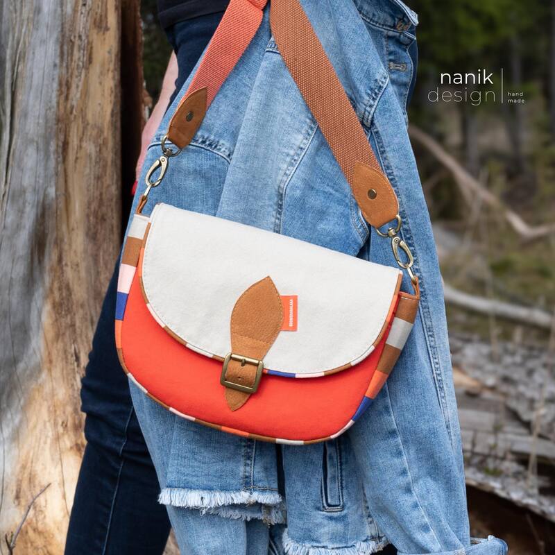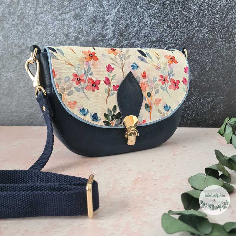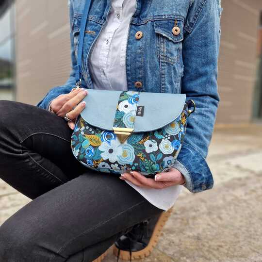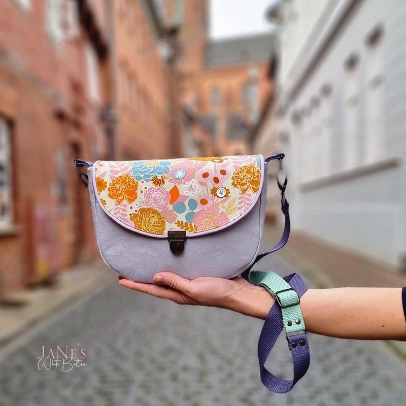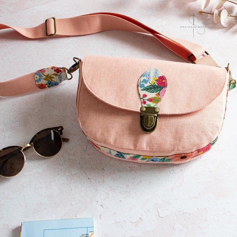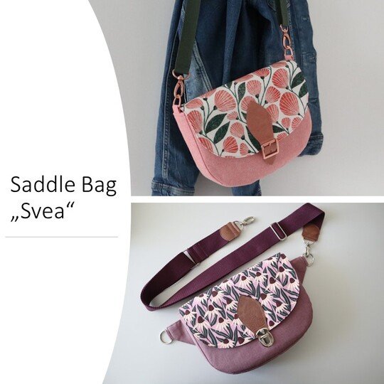 „Svea“ ist eine schlichte Saddle Bag, die mit ihrer angenehmen Größe von 24 cm B x 17 cm H x 5 cm T die ideale Begleitung für viele Anlässe ist. Ihre reduzierte, klassische Form wird mit dem Verschluss-detail perfekt ergänzt und kommt so bestens zur Geltung. Natürlich eignen sich auch andere Ver-schlusslösungen wie beispielsweise Druckknopf, Drehverschluss und vieles mehr. Trotz ihrer etwas kleineren Größe bietet sie genügend Stauraum, um alles Wichtige dabei zu haben. Wie immer kannst du diverse, optionale Fächer, wahlweise innen und außen, mit oder ohne Reißverschluss, anbringen, in denen alles sicher und geordnet verwahrt ist. Du kannst Svea aus unterschiedlichen Stoffen kombinieren, in Uni oder mit All Over Print gestalten und sie mit den alternativen seitlichen Trägerhalterungen als Crossbody Bag tragen. Dieses Taschenmodell ist auch für Anfänger bestens geeignet.