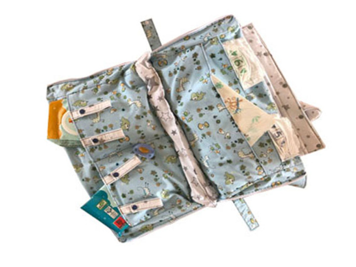 Mit dem Baby unterwegs zu sein, bedeutet einiges an Utensilien für die Pflege mit dabei zu haben. Windeln, Feuchttücher und Co. wollen untergebracht werden. Die Windeltasche Maja bietet hierfür jede Menge Platz. Sie hat innen mehrere Fächer wo man Windeln bis Größe 6, eine Wickelunterlage, Feuchttücher und Windelbeutel verstauen kann. Außerdem sind innen noch 4 Bänder angebracht, wo man den Schnuller und den Beißring dran befestigen kann. An der vorderen äußeren Tasche sind nochmal 3 Taschen angebracht, in denen man Cremetuben verstauen kann. In der hinteren äußeren Tasche findet das U-Heft seinen Platz. Das Design der äußeren Tasche ist eine Windel.