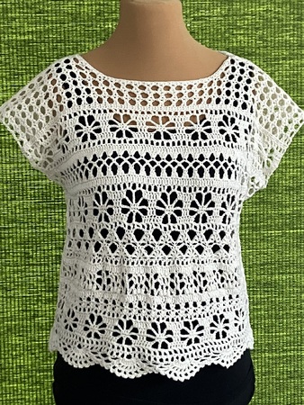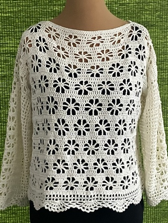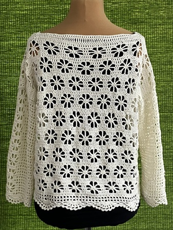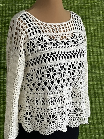 Das Blumenmuster ist einfach. Der Mustermix nicht mehr so einfach. Du solltest Häkelschrift lesen können und schon einmal ein Kleidungsstück gehäkelt haben, die Teile (Rücken- und Vorderteil), werden zusammen genäht oder gehäkelt. Die Ärmel werden angehäkelt.