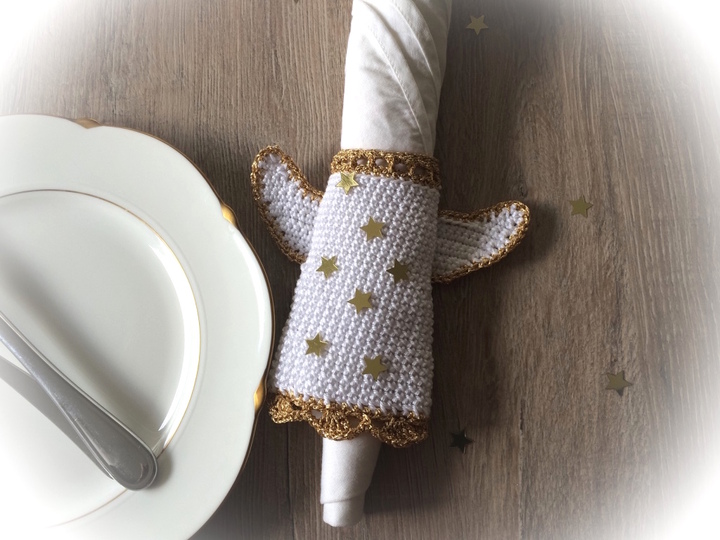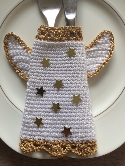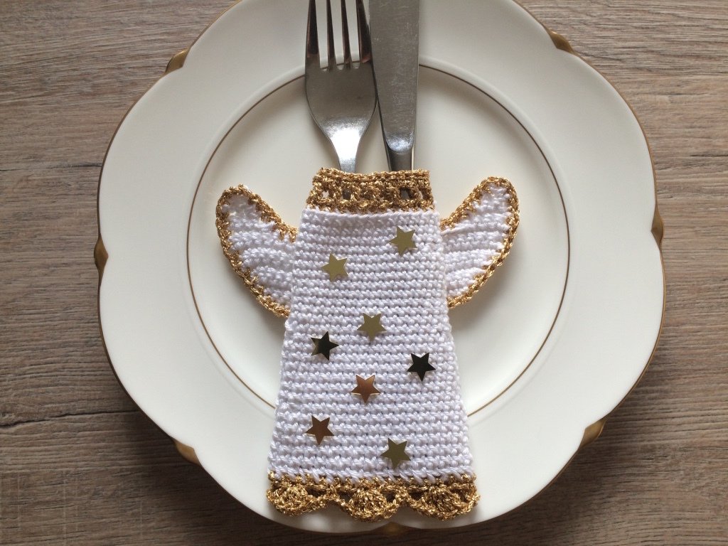 Der Engel kann als Bestecktasche oder als Serviettenring gearbeitet werden.