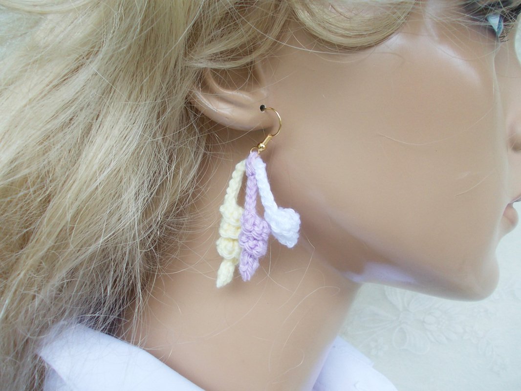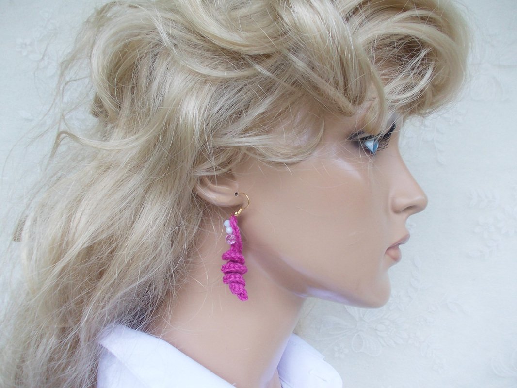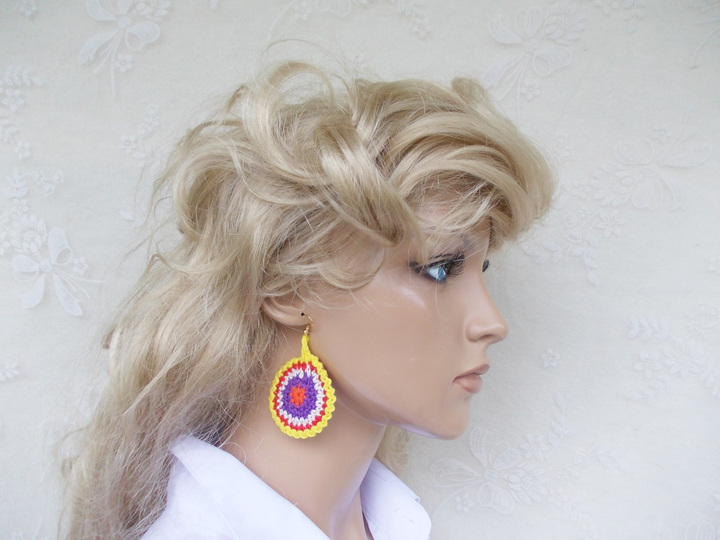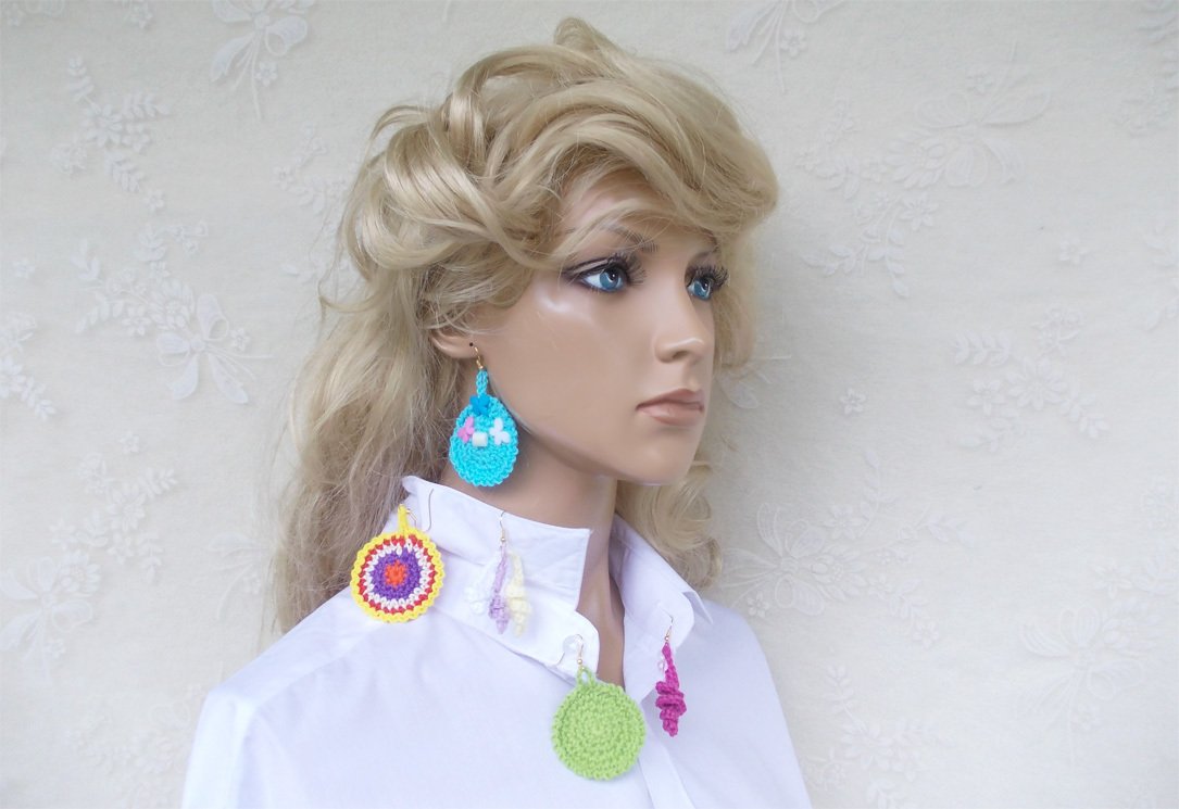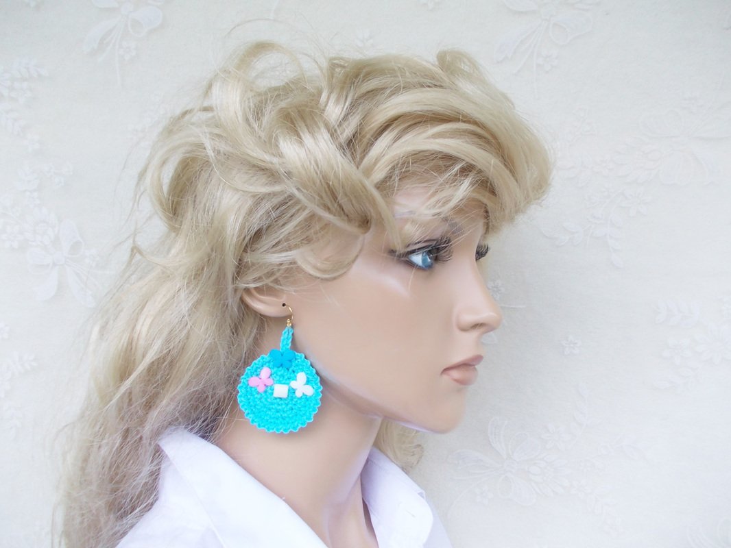 Die gehäkelten Ohrringe sind 4 - 6 cm lang bzw, im Durchmesser. Die Größe kann auch variiert werden.