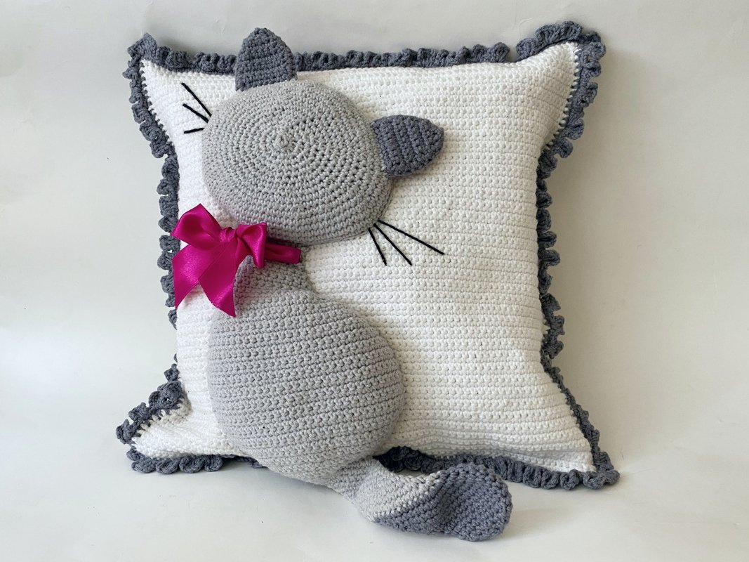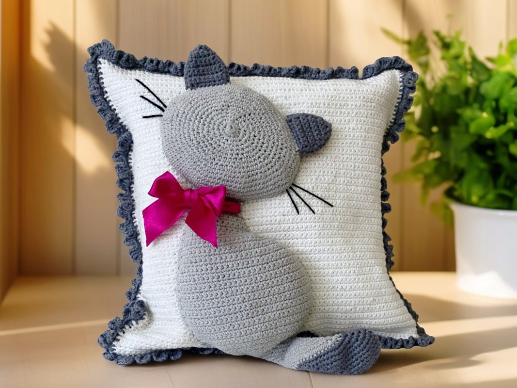 Ganz ohne Nähen – nur reine Häkelmagie! Eintauchen in die Welt des Häkelns mit dieser umfangreichen Anleitung für einen 3D-Kätzchen-Kissenbezug. Häkelanleitung.
