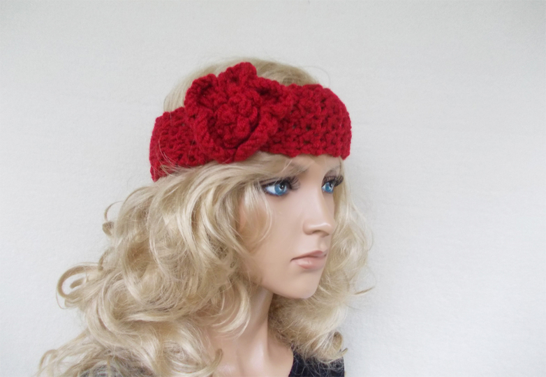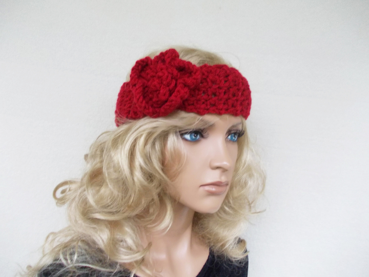 Eine Garnempfehlung gebe ich in der Anleitung, gleichfalls Hinweise zur Größenbestimmung. Das Stirnband kann auch in der Breite verändert werden. Meines hat eine Breite von 8 cm und die Blüte einen Durchmesser von 9 cm. Die Innenblüte hat einen Durchmesser von 3 cm.