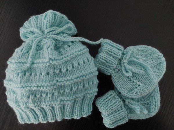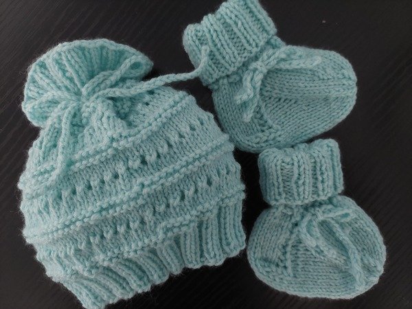 Das Baby-Set wird mit rechten und linken Maschen sowie Umschlägen gestrickt – ideal für alle, die diese Grundtechniken bereits beherrschen.
