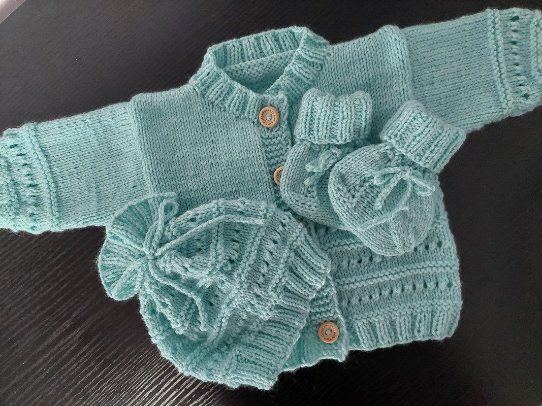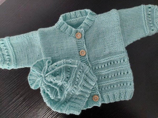 Das zarte Design in Türkis macht das Set zu einem echten Hingucker, das sowohl schlicht als auch stilvoll ist. Die weiche Babywolle sorgt für ein angenehmes Tragegefühl, während die sorgfältig ausgewählten Strickmuster eine bequeme und anschmiegsame Passform garantieren.