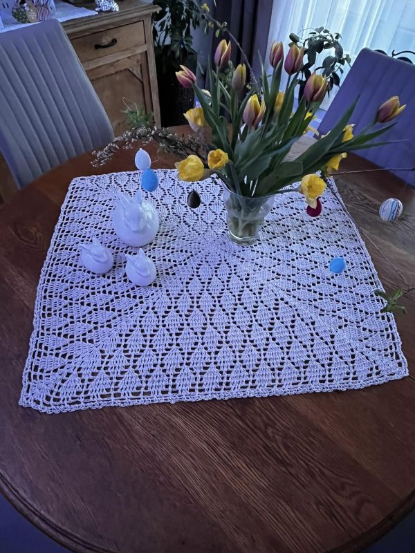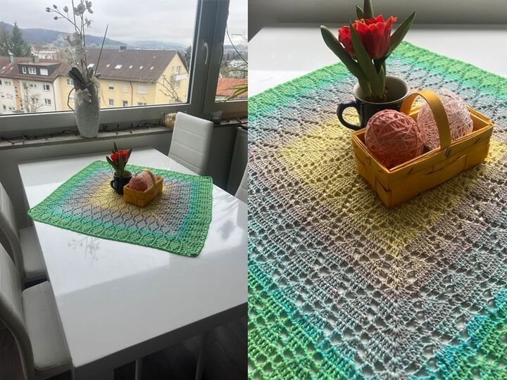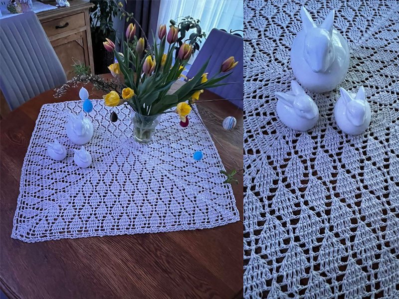 So kann eine große Mitteldecke gehäkelt werden und passend dazu kleine Deckchen oder Tischsets.