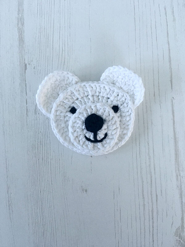 Mit dieser Häkelanleitung kannst du die Eisbär-Applikation selbst nachhäkeln. Die Applikation ist vielseitig einsetzbar und kann z.B. auf Mützen oder Babydecken genäht werden.
