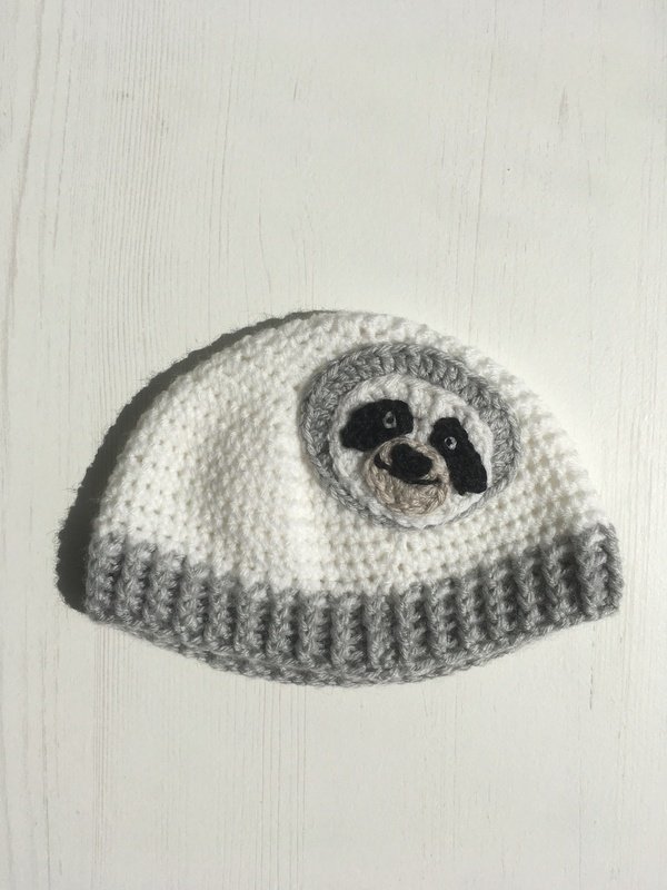 Mit dieser Häkelanleitung kannst du die Faultier-Applikation selbst nachhäkeln. Die Applikation ist vielseitig einsetzbar und kann z.B. auf Mützen oder Babydecken genäht werden.