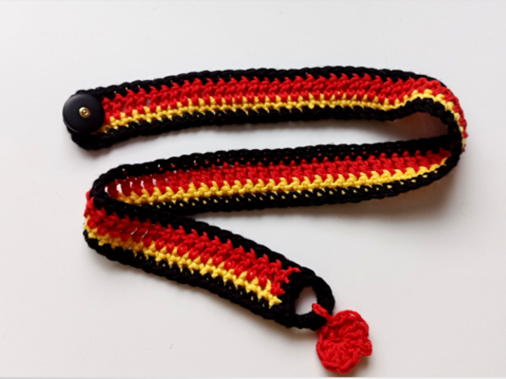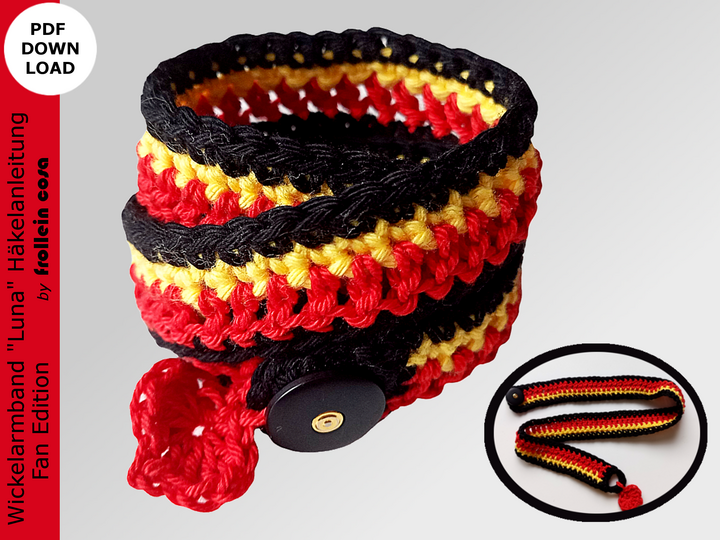 Dieses hübsche Wickelarmband aus einem Merino-Baumwollmix in den Farben Deutschlands, -