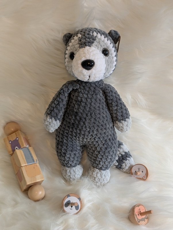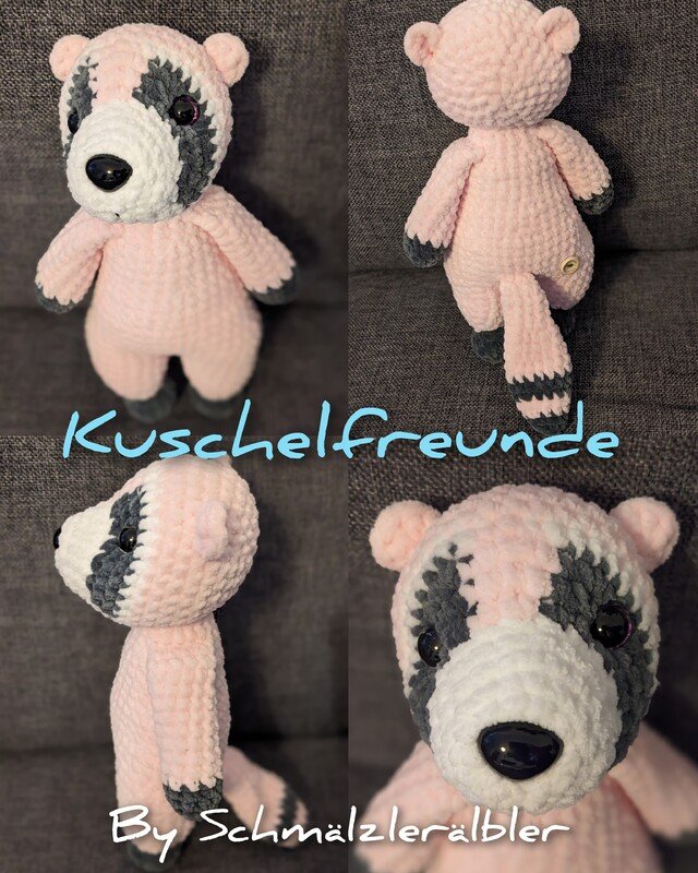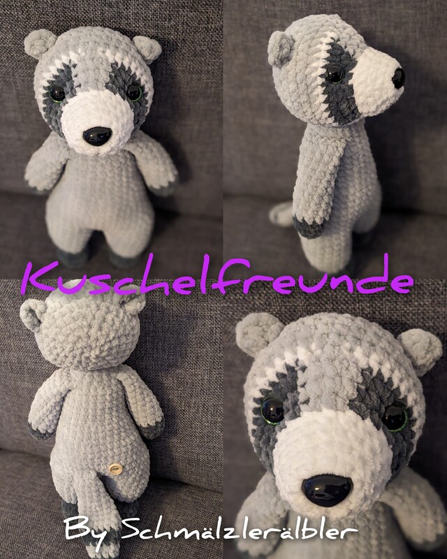 Die Anleitung ist in Deutsch. Mit Hilfe dieser Anleitung können Anfänger und natürlich auch Fortgeschrittene den süßen Waschbären nachhäkeln. Sie ist ausführlich beschrieben und bietet auch etliche Tipps und Kniffe. Zum Beispiel wie man die Sicherheitsaugen und die Nase versiegelt.