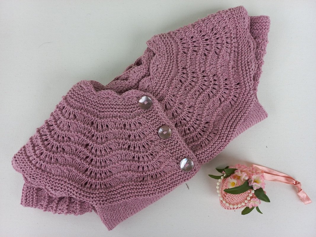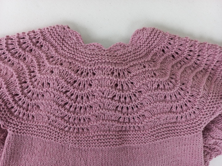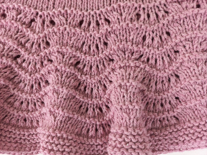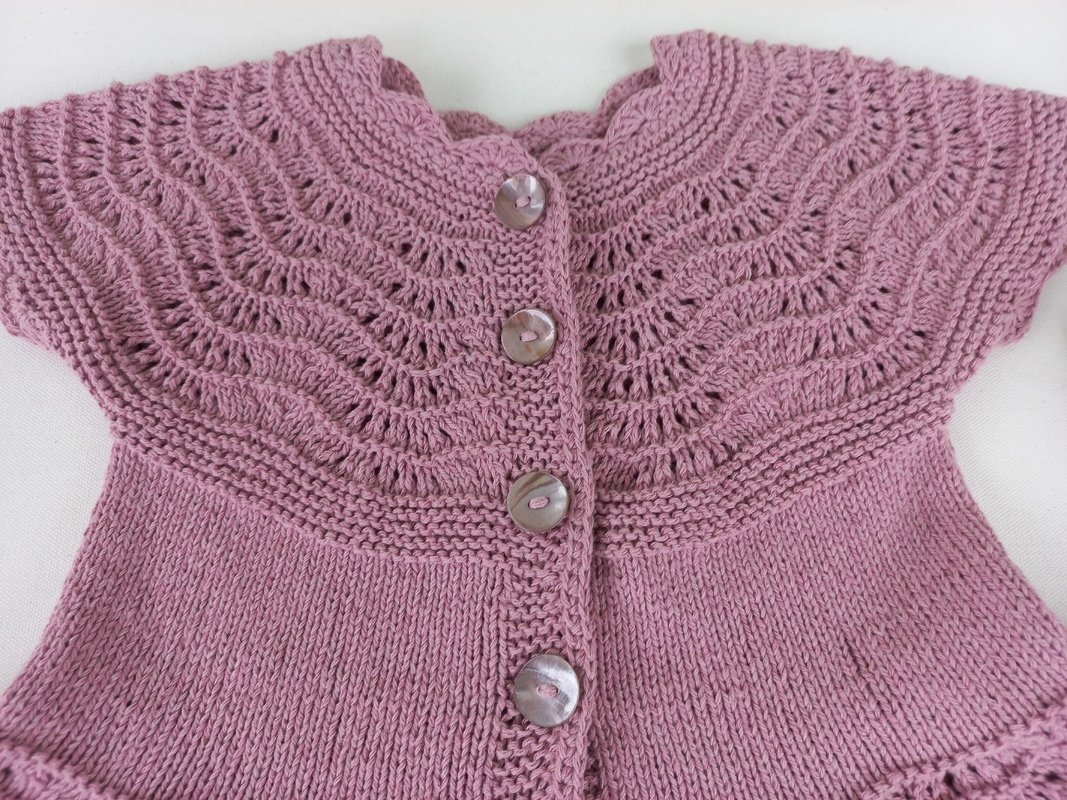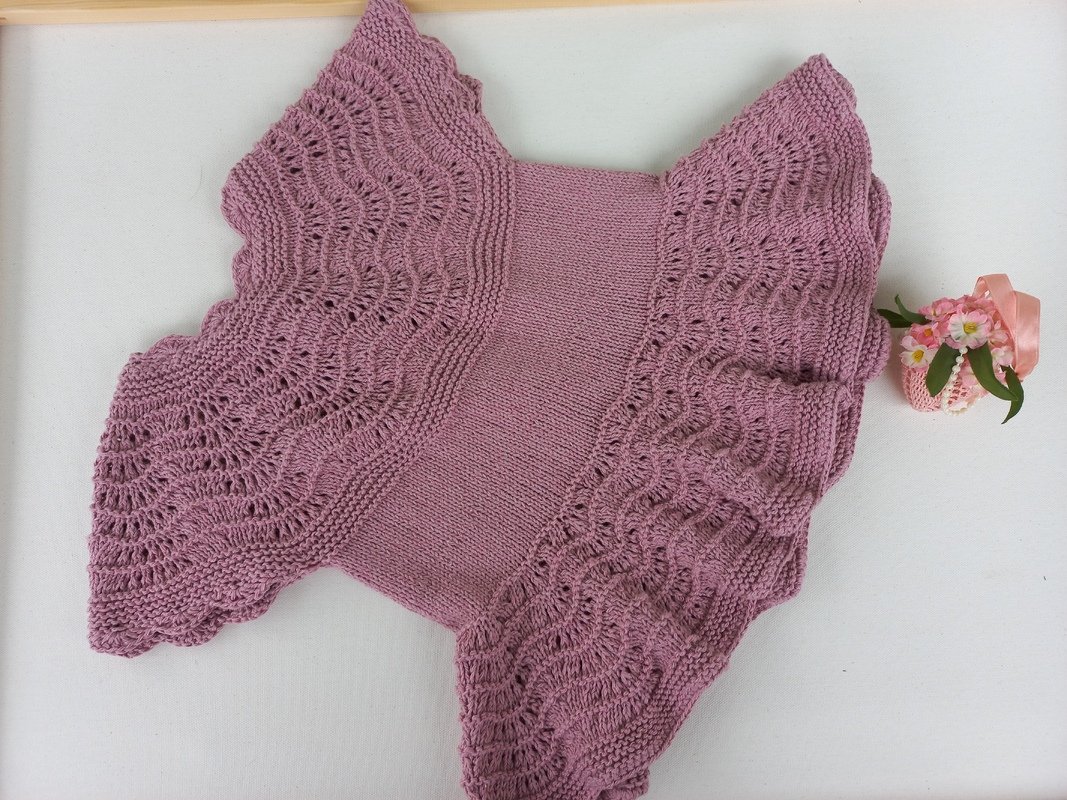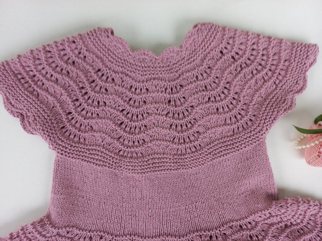 Hier bekommst du eine bis ins kleinste Detail erklärte 15-seitige Strickanleitung in deutsch für eine wunderschöne Babyweste/Mädchenweste/Tunika mit Rundpasse und Volant in einem tollen Lochmuster. Die Weste ist aus einer sehr weichen Baumwolle/Viskose/Leinen-Mischung in Größe 92/98 gestrickt und passend für ca. 2-3 Jahre. Die etwas längere Tunika ist ärmellos und wird von oben nach unten gestrickt. Das Muster ist sehr einfach und ich habe sowohl die Rundpasse als auch den Volant in einer Tabelle Reihe für Reihe aufgelistet. Man muss also einfach nach der Tabelle stricken, ohne Rechnen, Messen oder Umsetzen einer Strickschrift. Durch die Zunahmen im Muster entsteht die Rundpasse und auch der Volant. Man hat keine einzige Naht, was nicht nur toll aussieht, sondern auch super praktisch ist, weil man nichts mehr zusammennähen muss. Die Anleitung enthält auch die genauen Maße der Weste.