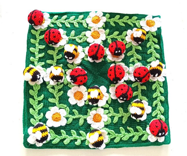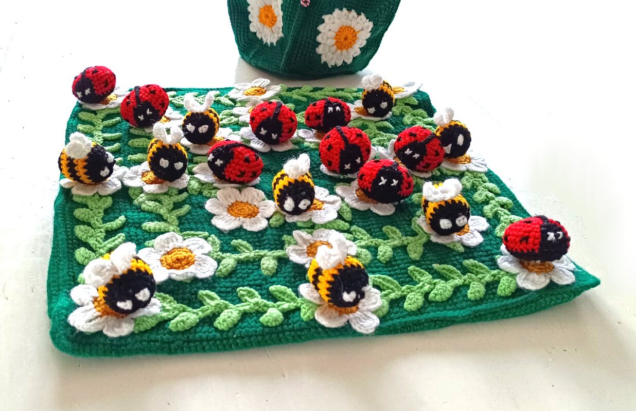 Ob Picknick, Tag am Strand oder der Urlaub: Dieses Spiel kann einfach immer mit! Durch die Häkelarbeit lässt es sich auch in der letzten Ecke des Autos oder Koffers verstauen. Selbst als Kissen für die lieben Kleinen während der fahrt eignet sich dieses Spiel. Es ist herrlich weich. Man kann es herrlich knautschen und drücken und der Spielspaß bleibt trotzdem! Das Perfekte Urlaubsspiel für Groß und Klein!