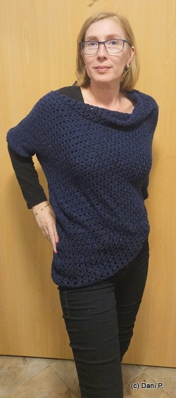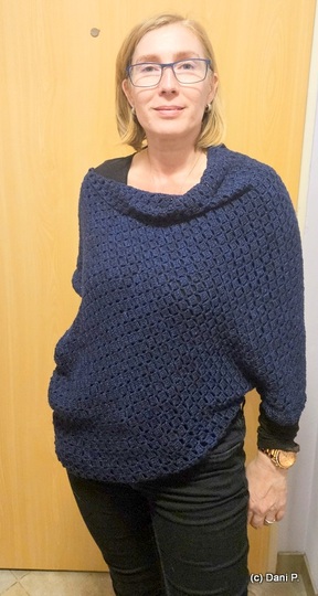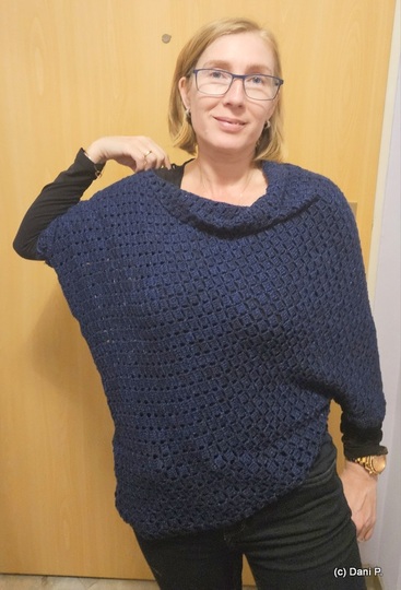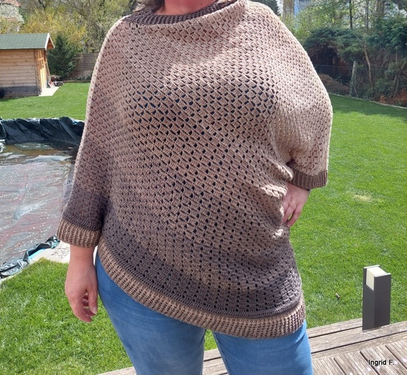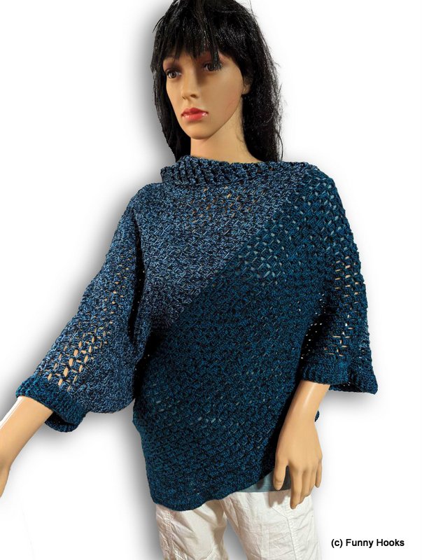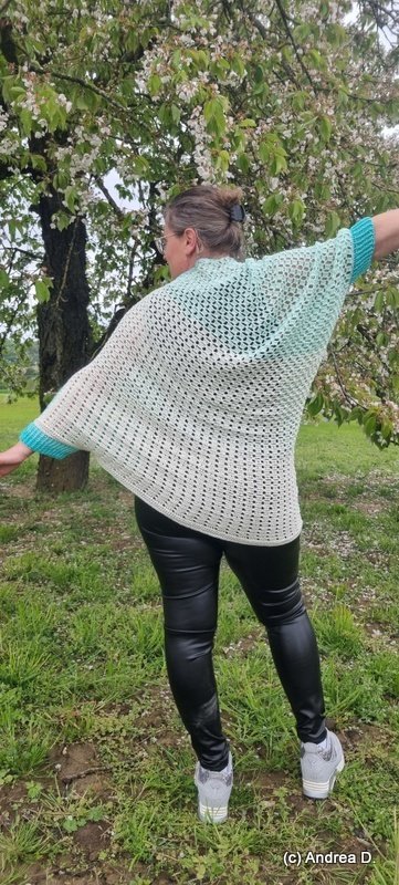 Du kannst dir den Ponchopulli mit oder ohne Bündchen arbeiten. Durch das schließen der Arme, entsteht die asymmetrische Form und der Pulli fällt leicht und luftig. Ideal also, wenn man gerne Oversize Pullis trägt.