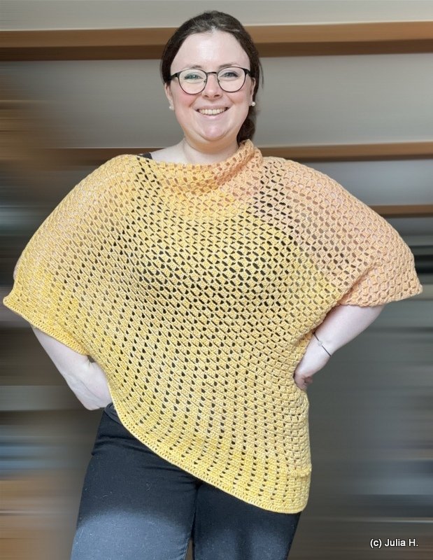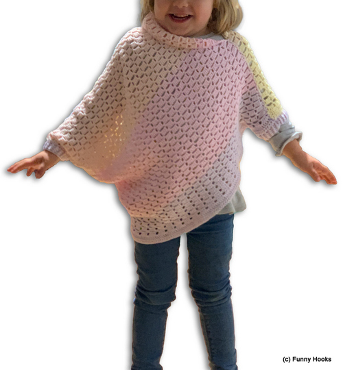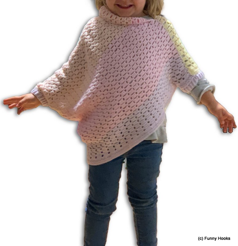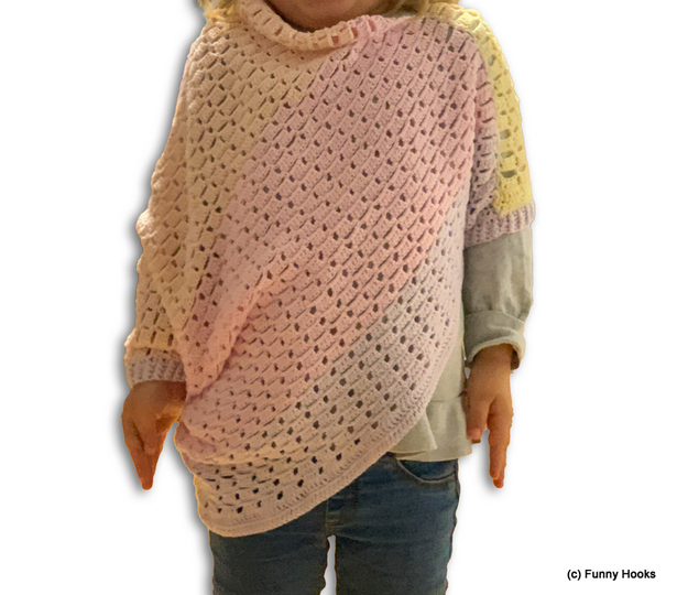 Romhor ist ein luftig, leichter Ponchopulli für Kinder und Erwachsene gleichermaßen. Der Ponchopulli ist perfekt für alle Garne, ob mit oder ohne Farbverlauf.