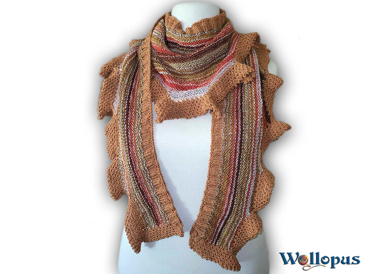 Duett… ein Tuch, das immer 2 Dinge enthält. 2 Farben, einmal mit Verlauf und einmal Uni, 2 verschiedene Garne, die Woolly Hugs Silk Socks und die Woolly Hugs Paint Socks und 2 verschiedene Techniken, stricken und häkeln in einer Runde.