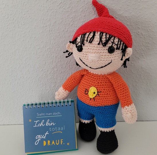 hr erwerbt eine reichiich bebilderte Häkelanleitung für den süßen kleinen Zwerg. Er wird quasi in einem Stück gehäkelt. Die Arme werden zwar seperat gehäkelt, aber später mit angehäkelt. Ausgehend von den Füßen wird der Zwerg in einem Stück gehäkelt. Lediglich zwischen den Beinen und die Mütze werden festgenäht.