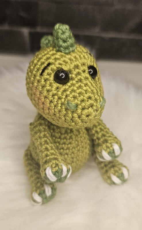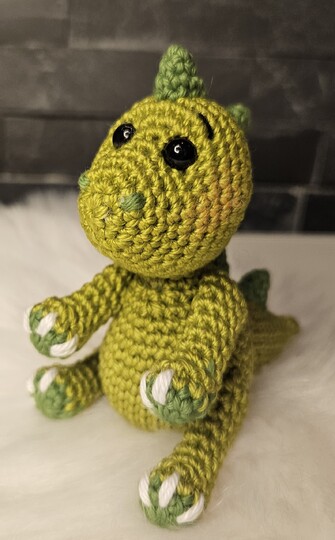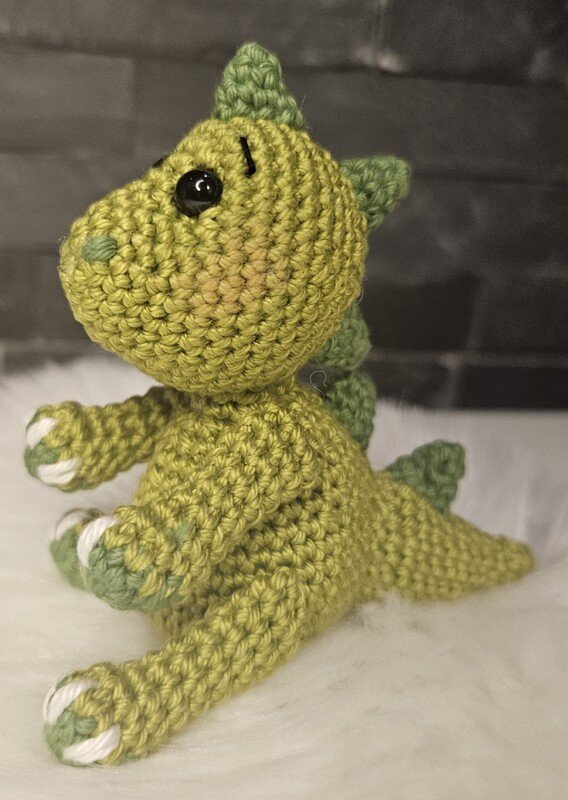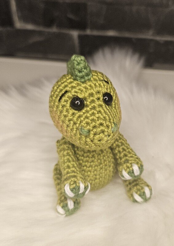 Eine Häkelanleitung zum nacharbeiten für einen kleinen Dino.