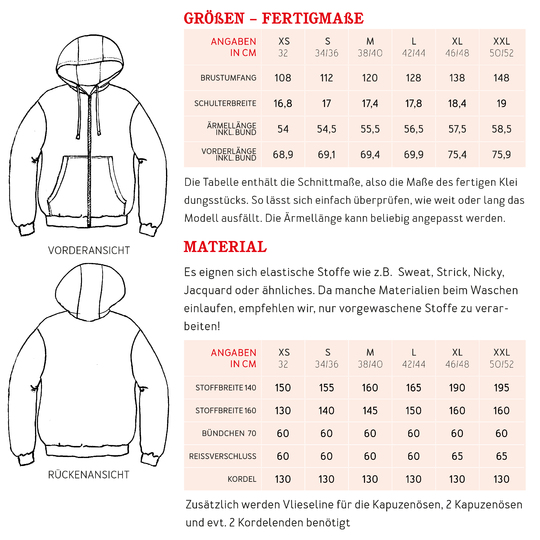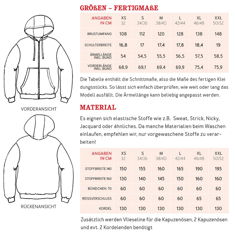 6 Doppelgrößen XS (32) bis XXL (50/52)