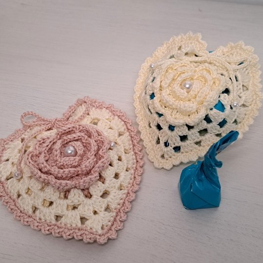 Die Herzen bestehen aus zwei Teilen, welche im Anschluss zusammen gehäkelt werden