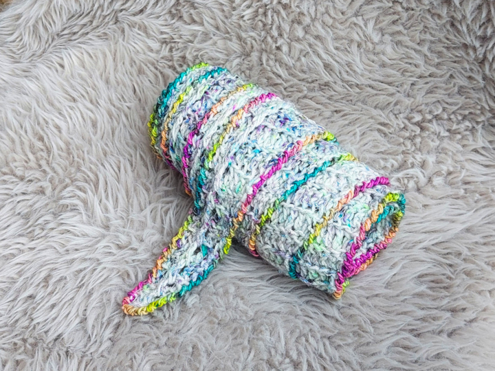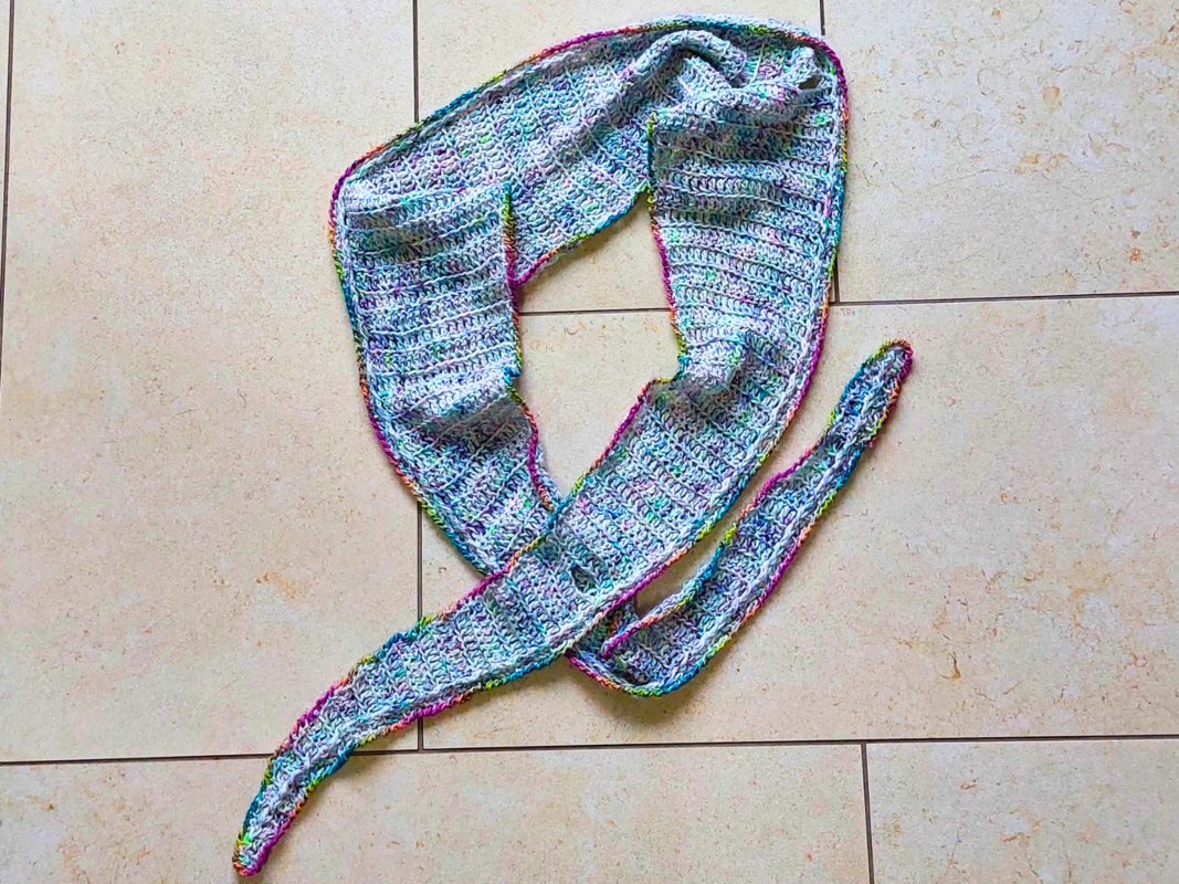 Das Halstuch kann mit jeder Wolle gefertigt werden. Je nach Material und Lauflänge kann es in der Größe variieren. Durch den geringen Verbrauch eignet es sich super als Reste-Projekt.