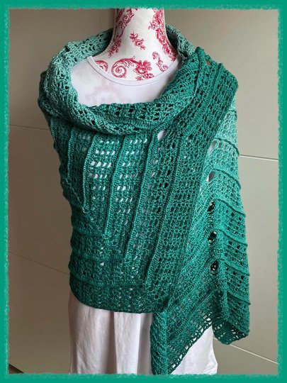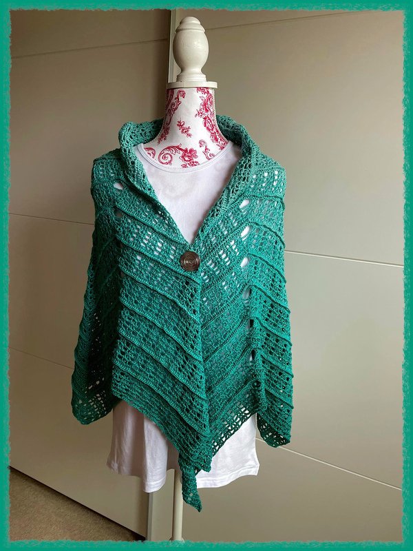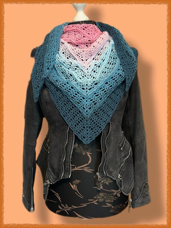 Es wird in Hin- und Rückreihen gehäkelt und kann, in der Größe, ganz einfach den eigenen Wünschen angepasst werden. Egal ob mit Farbverlaufsgarn oder mit einfarbiger Wolle gearbeitet, das luftige Muster und die ausgefallene Form machen das Tuch zu einem Must-have für den Sommer und zu einem absoluten Eye-catcher.