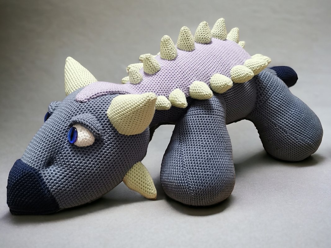 Der Fertige Dino wird ca. 70cm. Natürlich kann die Größe variieren, je nachdem ob man fest oder locker häkelt. Auch die Wahl der Wolle ist entscheidend. Ich selbst häkle mit Baumwollgarn 125m/50g (100% Baumwolle).