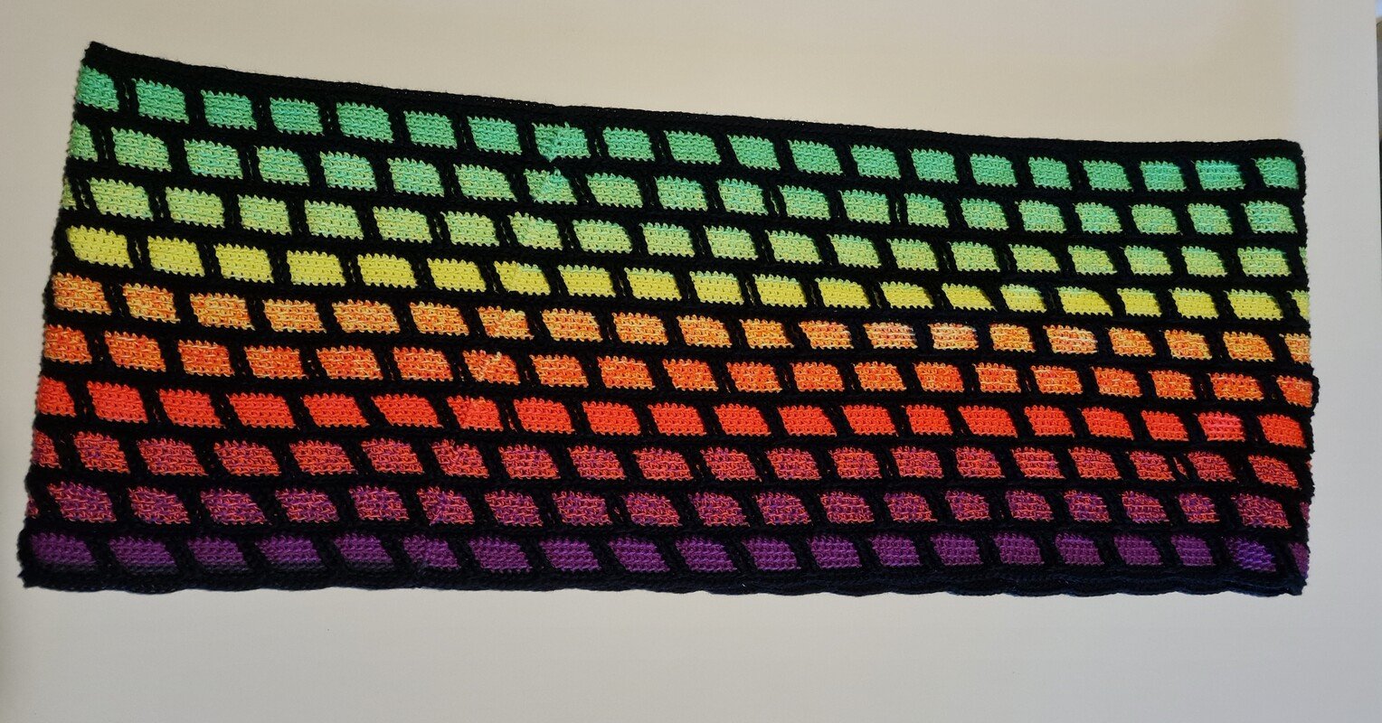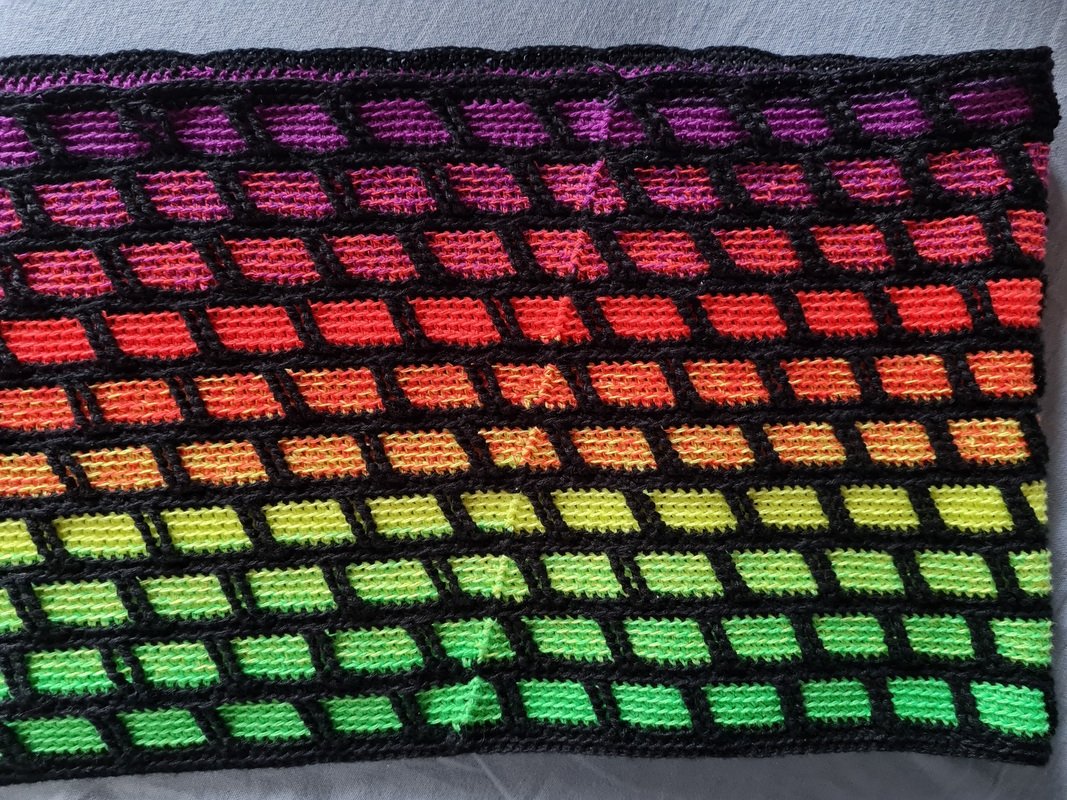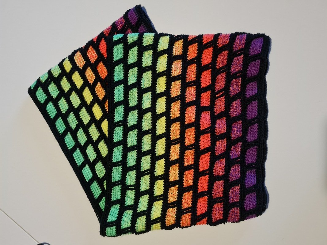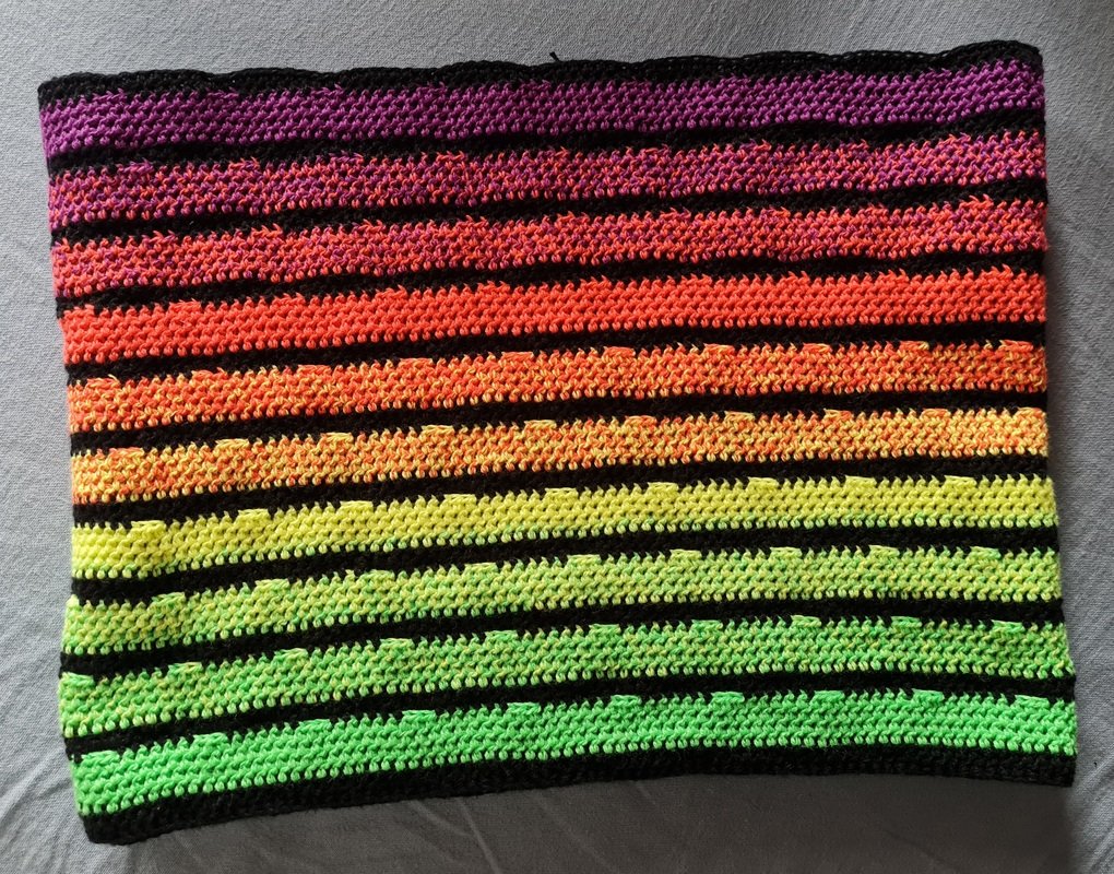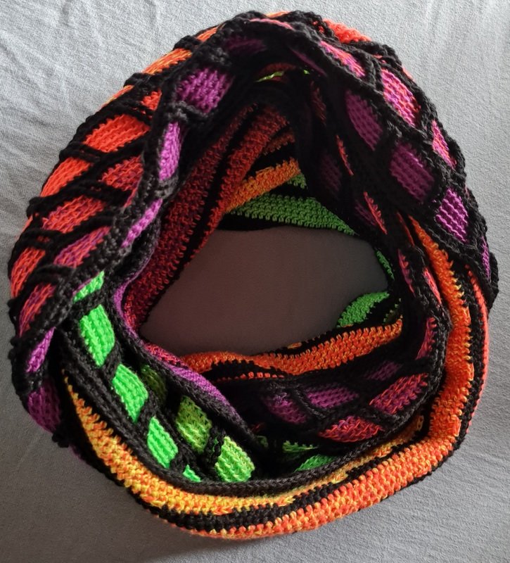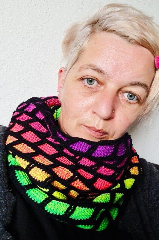 Dieser Loop ist sehr kompakt und gut für etwas kühlere Zeiten. Mit der Haupt- und Kontrastfarbe wird er aber trotzdem sehr abwechslungsreich und ist ein echter Hingucker. Er kann auch von beiden Seiten getragen werden.